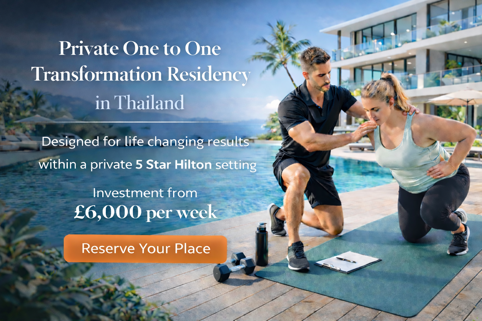 Your Private Couples Transformation ResidencyHilton 5 Star Resort SettingInvestment £10,800 per weekYour private ensuite suite within our 5 Star Hilton resort becomes your shared transformation base. Designed for privacy, focus and accountability, this is where two committed individuals pursue measurable results together. Every detail is structured to drive measurable progress for both residents while maintaining the comfort and service expected from a world class setting. Your Residency Includes✔ Private luxury suite within our Hilton 5 Star resort setting OnTrack Director OversightYour residency is personally overseen by the OnTrack Director to uphold uncompromising standards and ensure measurable results for both residents. |